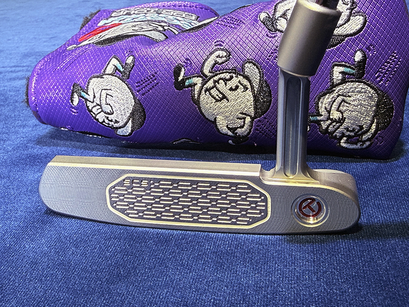 3 Cherry bombs on the backcavity. Circle-T in the left bomb. SCOTTY CAMERON on the heel of the face. SCOTTY CAMERON, NEWPORT, FOR TOUR USE ONLY, on the sole. Circle-T and 30 on the sole weights. It has a flangeline. Grip: Circle-T full-contact Black/White Headcover: Baller Boy Circle-T Purple
