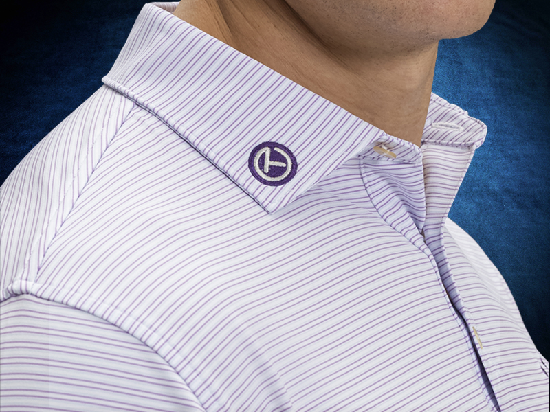 Harrington performance polo in white and purple iris will make a great addition to your
